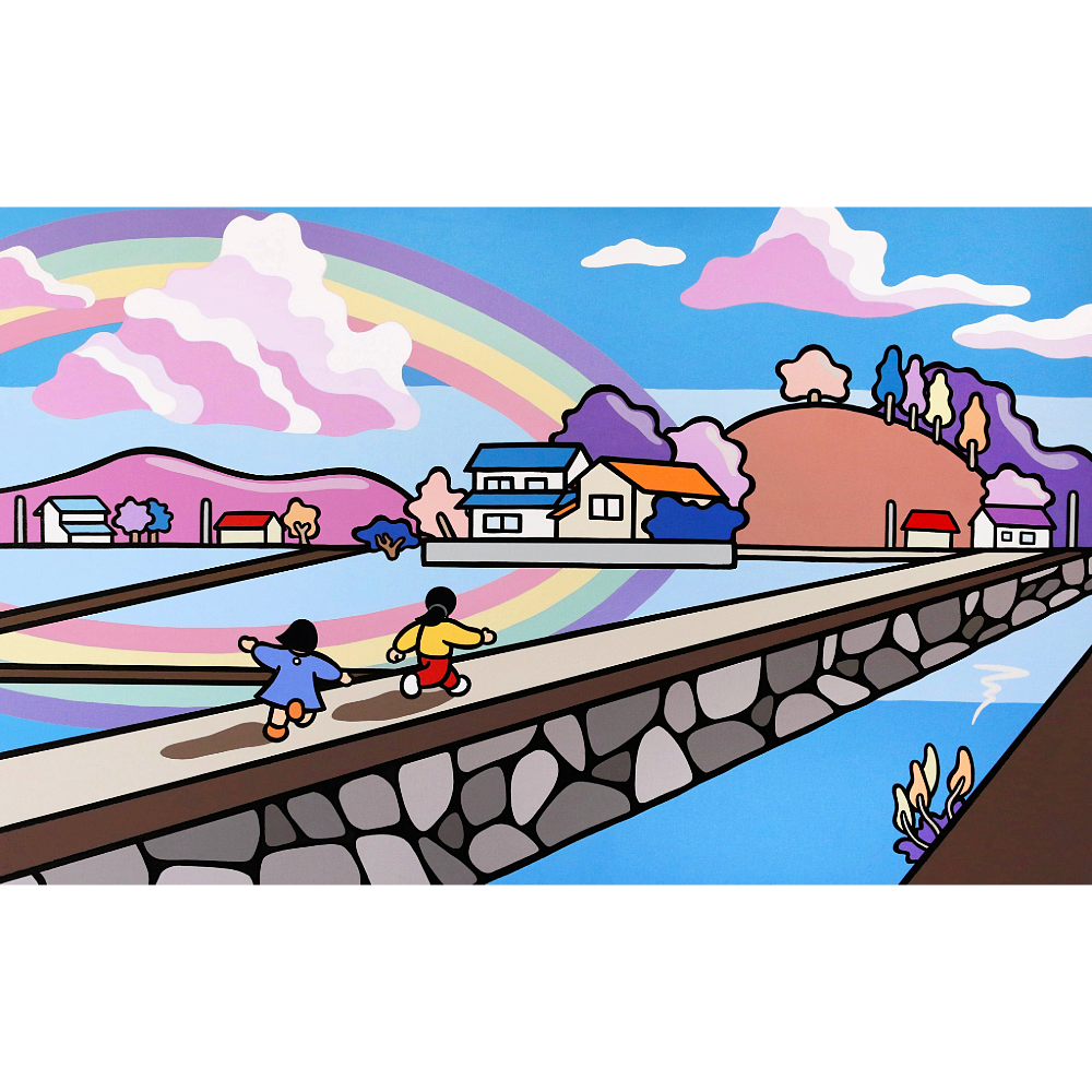 With the theme of "memories evoked by landscapes," he paints Japanese landscapes that evoke a sense of nostalgia, overlapping them with his own memories and emotions.