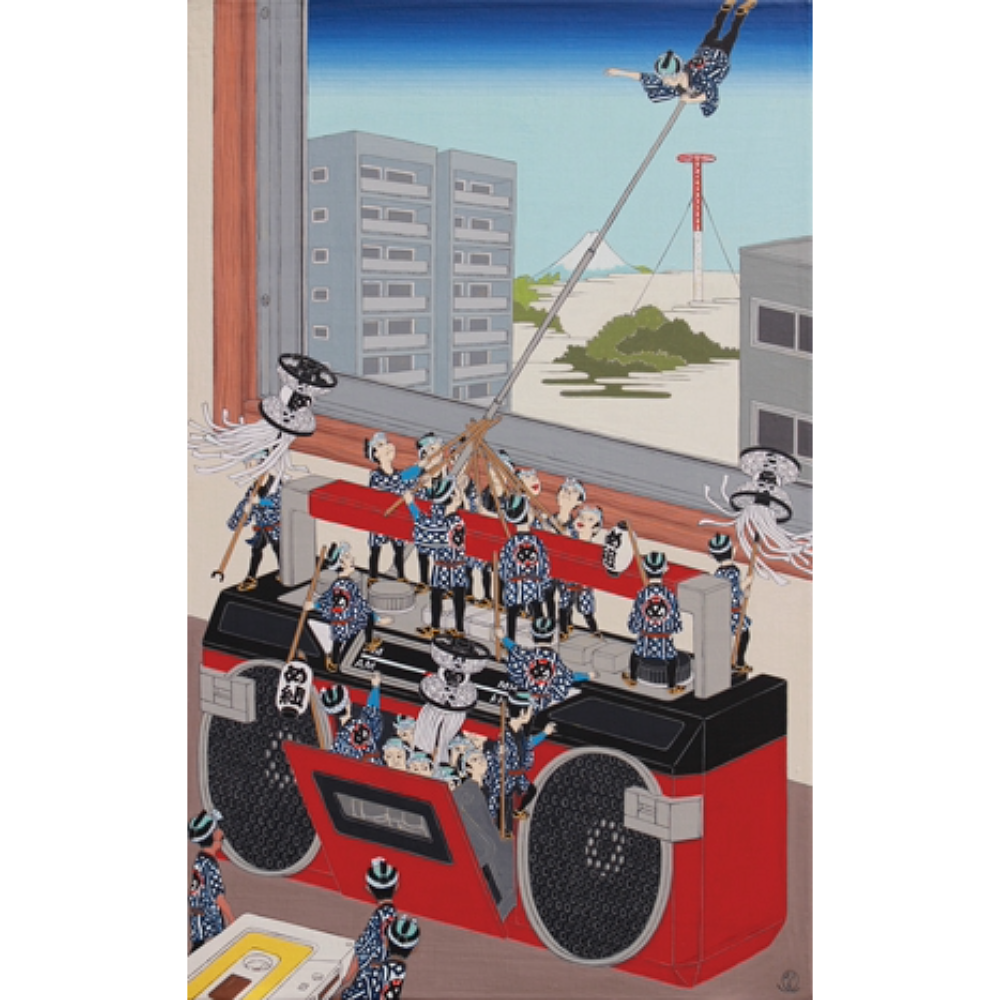 A painter living in Tokyo, he was directly inspired by Japanese folk customs such as the Bon Odori dances of the downtown area and the Kagura dances he saw around the country, and he explored his own style of painting, which led to his current style of painting.