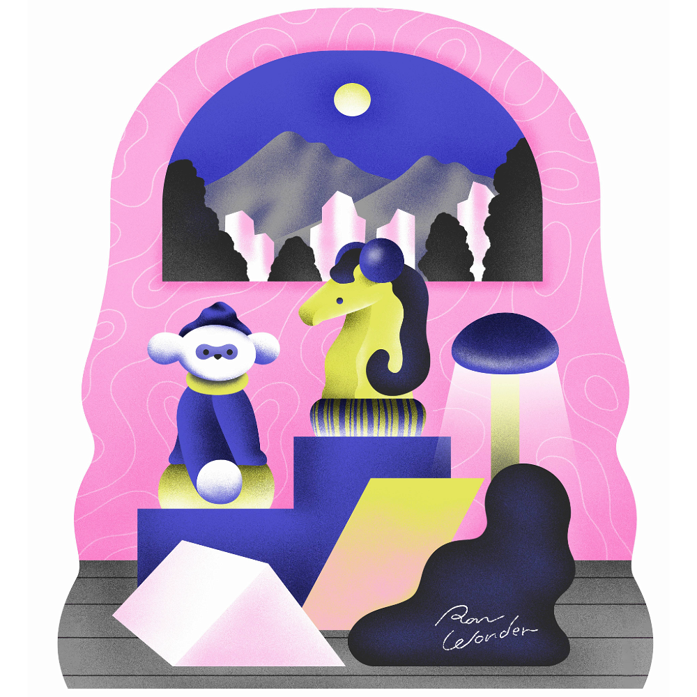 I love to depict a world of wonder using simple, soft forms and vibrant colors.