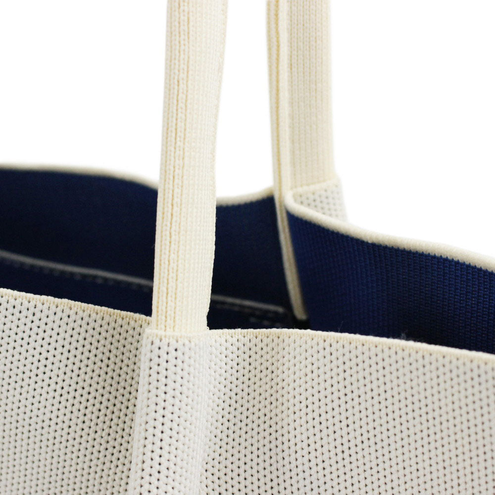 The fabric is knitted piece by piece according to the tote bag pattern,