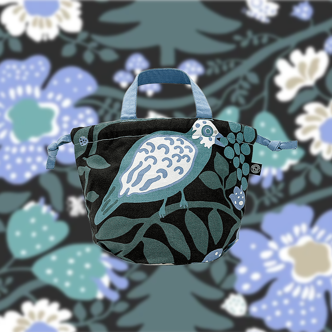 It means "blue bird" in Swedish, and the fabric depicts birds happily picking fruits and flowers. For the first time in 40 years, the designer himself added a new pattern including a lucky tentworm to the original pattern on both ends to complete the product.