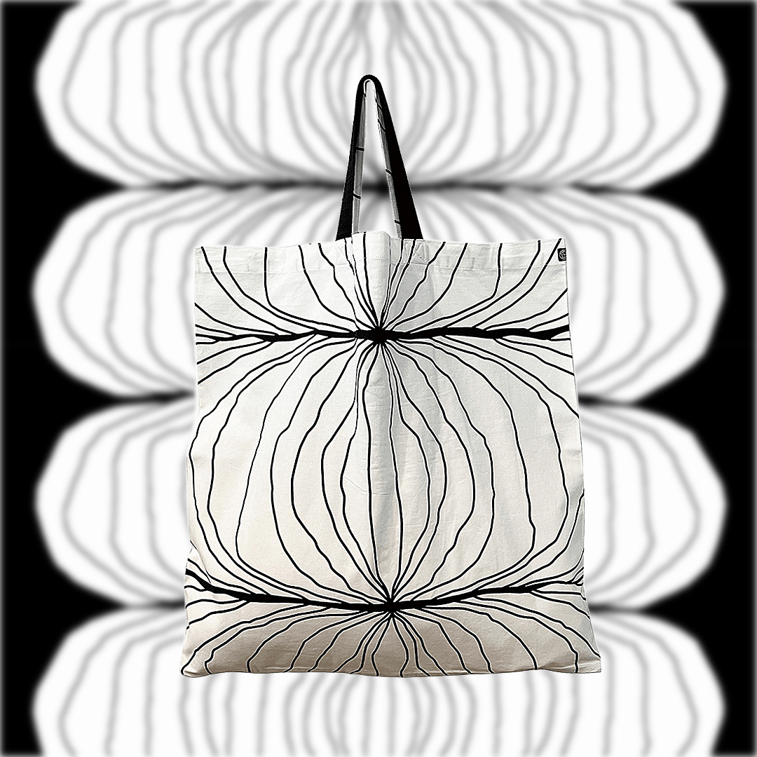 Vertical tote bag printed with BLÅ FÅGEL designed by Anna-Lene Emden .
