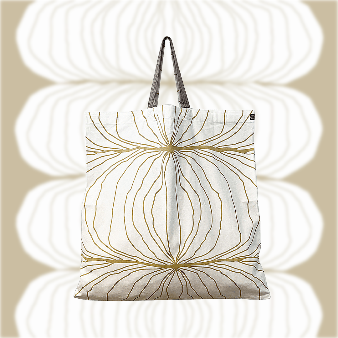 Vertical tote bag printed with BLÅ FÅGEL designed by Anna-Lene Emden .