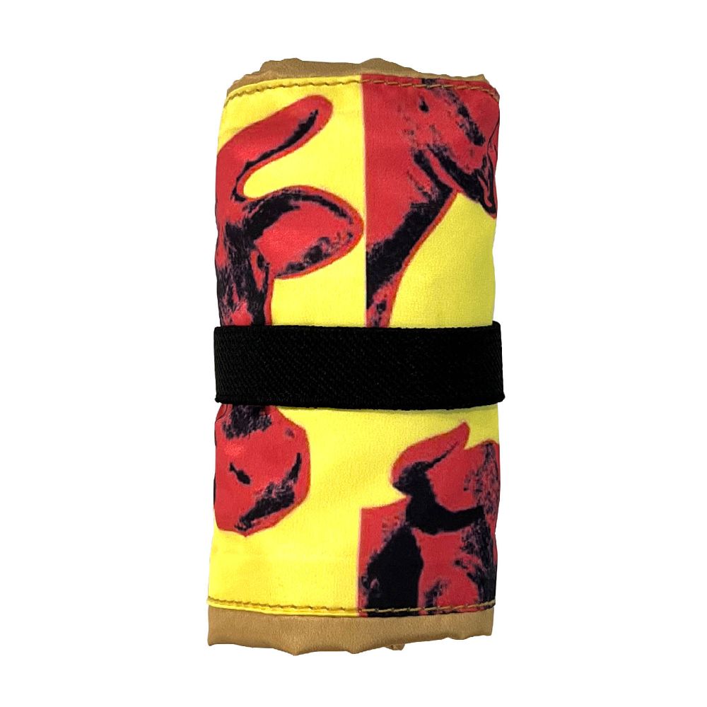 A packable tote that combines two pieces. It is rare for multiple works to be used in a single product. It can be made compact by wrapping it around with the included flat rubber.
