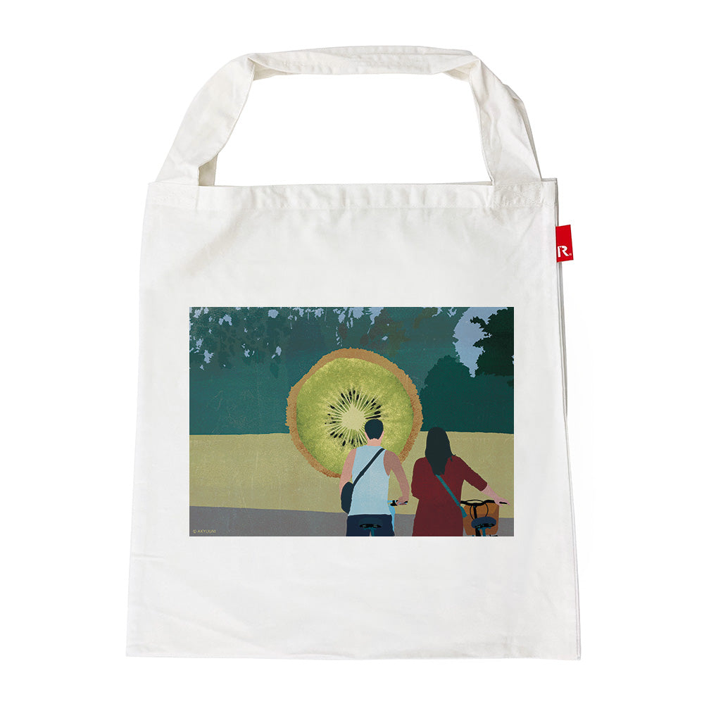 An A4 size flat tote with two inner compartments. Documents and small items, work and private, wallet and shopping items can be stored separately. There is an inner pocket between the two partitions and ROOTOTE's identity "Roo pocket" on the side.