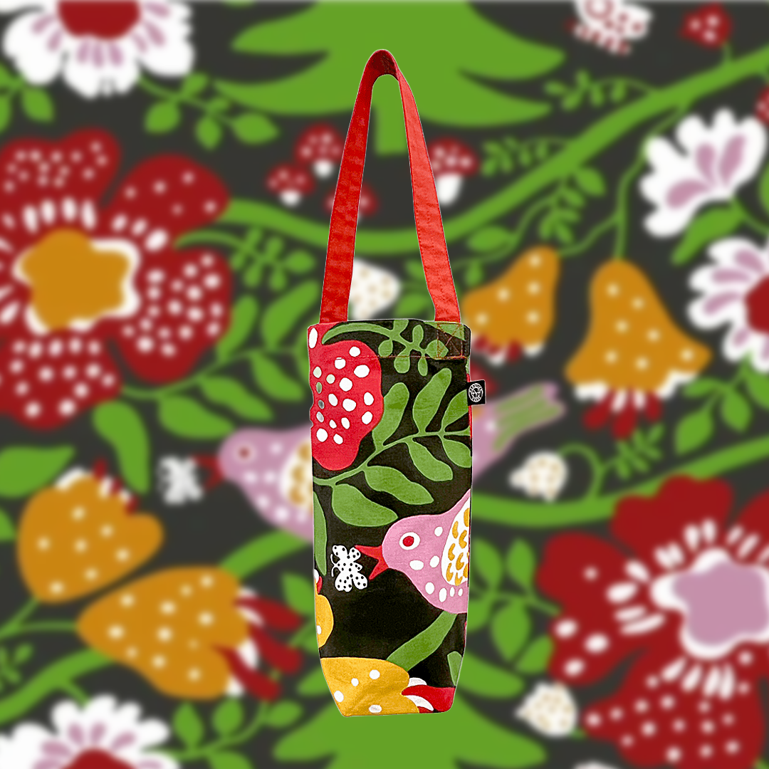 Tote bag for wine bottles printed with BLÅ FÅGEL designed by Anna-Lene Emden.