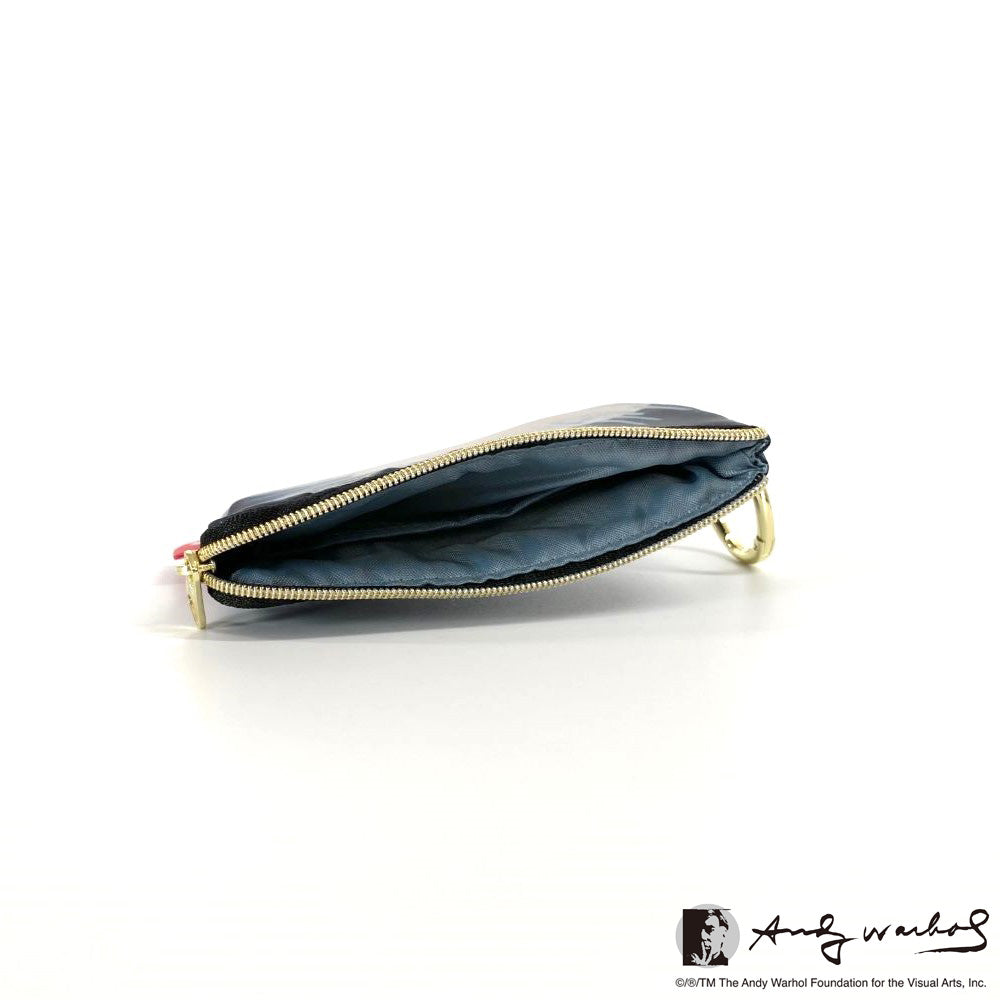 ウォーホルが撮影したアイコニックなポラロイドフォトをプリントした中綿入りポーチ。しなやかな生地に中綿のふんわり感が気持ち良い一品です。