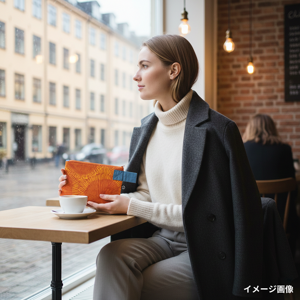 Kjell BolinデザインのMASKROSをプリントしたポーチ。